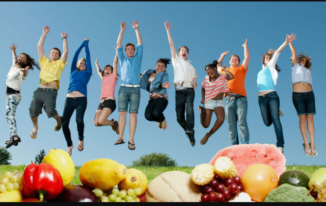 Consume tres raciones de vegetales y dos de frutas al día para obtener fibra y antioxidantes, que retrasan el envejecimiento celular y promueven la salud.
