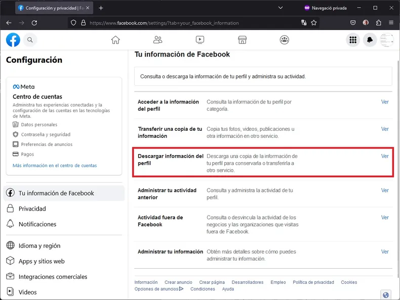 Luego llega el momento de la nostalgia: descargar una copia de todo lo que se compartió. Hay una función que permite guardar publicaciones, fotos, videos y más. Solo hace falta entrar en el Centro de cuentas, ir a la parte de Información y permisos, y elegir la opción para bajar los datos. Se puede pedir todo el contenido en formato HTML y en calidad alta para no perder detalles. El archivo se genera en un tiempo y se notifica por correo cuando está listo.
